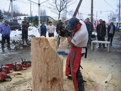 用意していただいたのは北海道名物?のトドマツの大木です。直径60センチです。 |